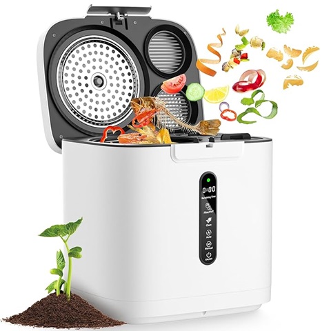 Amazon - 4L Electric Composter for Kitchen, Smart Compost Bin Outdoor/Indoor, Odorless/Auto-Cleaning/ 3 Modes/Intelligent LED Display, Turn Food Waste to Fertilizer for Garden, Food Waste Compost Machine