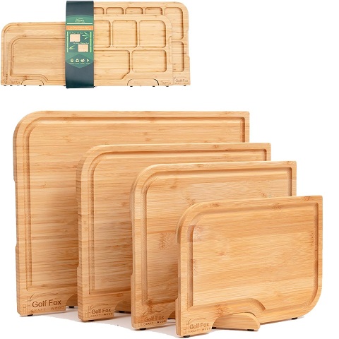 Amazon - 4-Pieces Wooden Cutting Boards Set with Stand, Double-Sided: Wooden Chopping Board and Charcuterie Board, Bamboo Cutting Board Set with Holder, Wood Cutting Board for Kitchen, Wooden Cutting Board Set