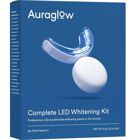 Amazon - Auraglow Teeth Whitening Kit, LED Accelerator Light, 35% Carbamide Peroxide Teeth Whitening Gel, 20+ Whitening Treatments, (2) 5mL Whitening Gel Syringes, Whiten Teeth Faster