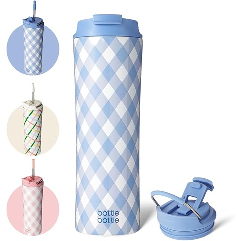 Amazon - BOTTLE BOTTLE Insulated Water Bottle Coffee Tumblers with Dual-use Lid and Straw Double Walled Iced Travel Coffee Mug for Woman and Man 24oz Stainless Steel Tumbler with Handle