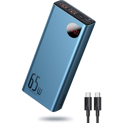 Amazon - Baseus 65W 20000mAh Power Bank, Laptop Portable Charger,Smart Digital Display, Compatible with iPhone 15/14/13 Series, Samsung, MacBook, Dell, Steam Deck