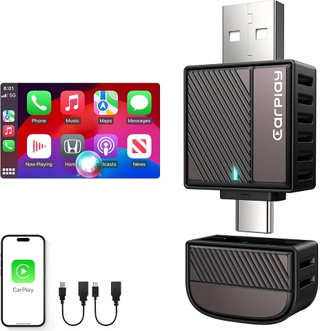Amazon - ByteWave CarPlay Wireless Adapter for Apple, Convert Wired to Wireless CarPlay Adapter for iPhone [Mini Size, USB-A & USB-C/Type-C, No Delay, Plug & Play], Compatible with Cars from 2016, Brown