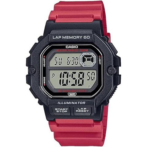 Amazon - Casio LED Illuminator 10-Year Battery Men's Digital Sports Watch 60-Lap Memory Model: WS-1400H-4AV, Black (WS1400H-4AV)