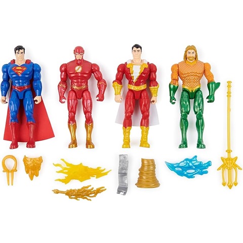 Amazon - DC Comics, Action Figures 4-Pack, Superman, The Flash, Shazam!, Aquaman 4-inch Figures, Accessories, Superhero Kids Toys for Boys and Girls, Ages 3+
