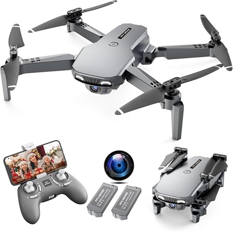 Amazon - Drone with Camera, Drones for Kids and Beginners, Teen Boys Toys Gifts Ideas, 1080P HD Foldable FPV RC Helicopter Quadcopter with One Key Start, Altitude Hold, Gesture Selfie, 2 Batteries, Grey