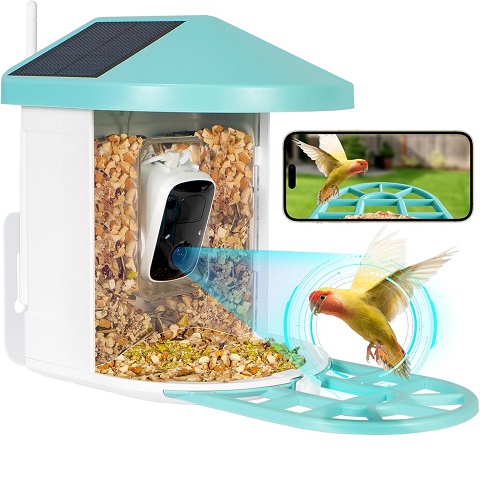 Amazon - EFURDEN Bird Feeder with Camera, Dual Solar Bird Feeder, AI Identify Birds, 4K High Resolution, Weather-Resistant Bird Feeder, Best Bird Watching Experience for Bird Lovers