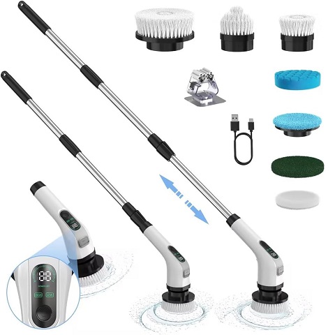Amazon - Electric Spin Scrubber with Long Handle: Cordless Power Shower Scrubber - Spin Brush with 7 Brush Replacement Heads for Cleaning Bathroom,Tub, Tile