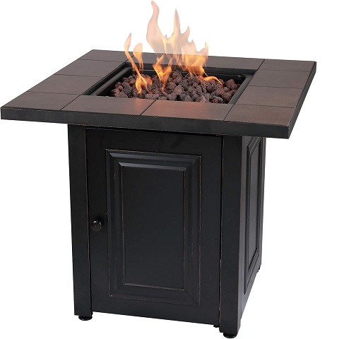 Amazon - Endless Summer, The Vanderbilt, Square 28'' Outdoor Propane Fire Pit with Handcrafted Ceramic Tile Mantel and Lava Rock