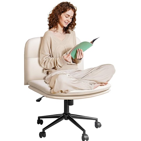 Amazon - FLEXISPOT Criss Cross Chair with Wheels, Vanity Chair with High Back, Armless Criss Cross Desk Chair with Comfy Wide Seat Cushion for Home Office(White)