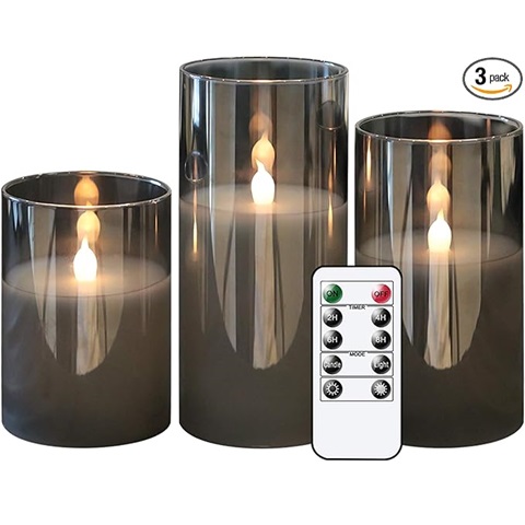 Amazon - GenSwin Gray Glass Battery Operated Flameless Led Candles with 10-Key Remote and Timer, Real Wax Candles Warm White Flickering Light for Home Decoration(Set of 3)