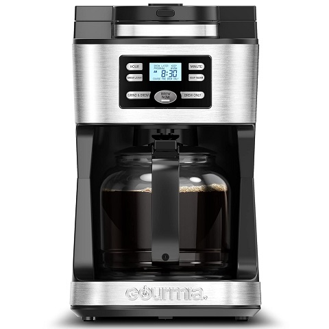 Amazon - Gourmia Digital Coffee Machine 12Cup FullyAutomatic Large coffee maker integrated CoffeeGrinder,Pot,stainless steel mesh coffee filter 4Hr KeepWarm and Freshness Indicator GCM3180,Black and Silver