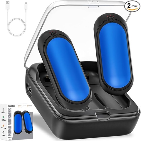 Amazon - Hand Warmers Rechargeable 2 Packs with 10000 mAh Charging Box, Temperature Control Electric HandWarmers, Portable Pocket Size Heater for Christmas, Outdoors, Hunting, Golf, Sports, Camping Accessories