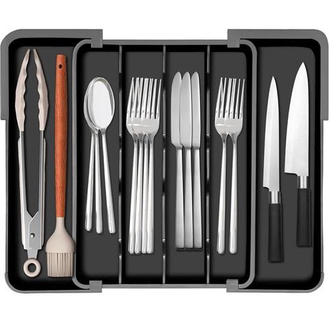 Amazon - Homecor Silverware Organizer - Large Expandable Kitchen Drawer Organizer Utensil Holder, BPA Free Flatware and Cutlery Tray for Spoons Forks Knives, Plastic Kitchen Organizer and Storage