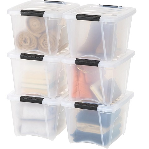 Amazon - IRIS USA 19 Qt Stackable Plastic Storage Bins with Lids, 6 Pack - BPA-Free, Made in USA - See-Through Organizing Solution, Latches, Durable Nestable Containers, Secure Pull Handle - Clear