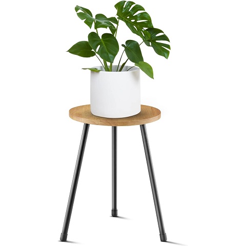 Amazon - Indoor Plant Stand, Mid Century Wood Plant Stand Plant Table for Flower Pots, Tall Metal Plant Holder, Modern Home Decor Small Round Side End Table (11.8