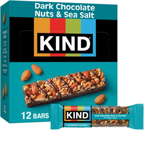Amazon - KIND Nut Bars, Dark Chocolate Nuts and Sea Salt, Healthy Snacks, Gluten Free, Low Sugar, 6g Protein, 12 Count