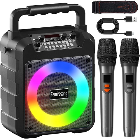 Amazon - Karaoke Machine for Adults Kids - Portable Bluetooth Karaoke Speaker with Two Wireless Microphones, PA System Speaker Supports TF Card/USB, AUX in, REC, Bass & Treble for Party/Meeting