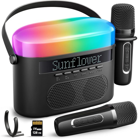 Amazon - Karaoke Machine for Kids & Adults with 2 Wireless Mics 2400mAh Portable Bluetooth Karaoke Speaker with Timer White Noise & Night Light High Power Dual Speaker LED Display Home & Outdoor Party - Black