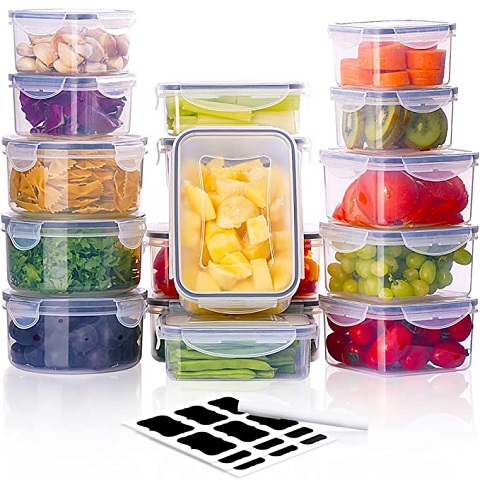 Amazon - Large Plastic Food Storage Container with lid, CASA LINGO Meal Prep Airtight Containers for Kitchen and Fridge, Set of 16 Pieces Plastic Food Containers (clear)