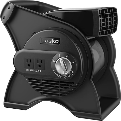 Amazon - Lasko 12'' Utility Fan for Job Site or Home Use, 289 CFM, Pivoting High Velocity Blower Fans, 3 Speeds, 2 Accessory Outlets 120V, Black, U12104