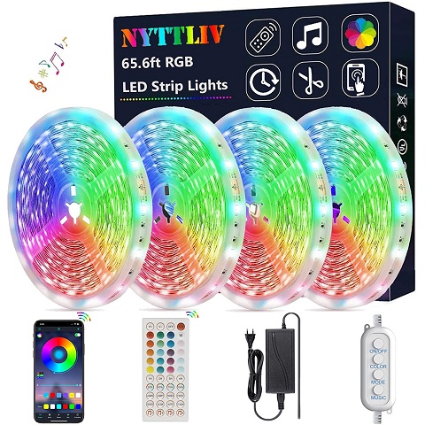 Amazon - Led Lights for Bedroom, Led Strip Lights 65.6ft Led Lights Music Sync RGB Rope Lights Smart App Controlled Tape Lights and 5050 RGB Flexible Color Changing Remote Control for Bedroom Party Home Decor