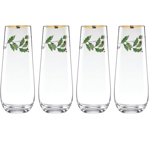 Amazon - Lenox 889237 Holiday 4-Piece Stemless Flute Set, Christmas Theme