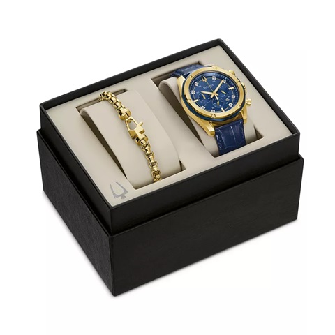Macy's - Men's Chronograph Diamond-Accent Blue Leather Strap Watch 43mm Gift Set