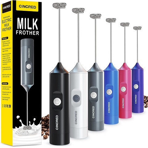 Amazon - Milk Frother Electric, Battery Operated Handheld Frother for Coffee, Mini Whisk, Foam Maker and Drink Mixer for Latte, Cappuccino, Frappe, and Hot Chocolate (Gray)