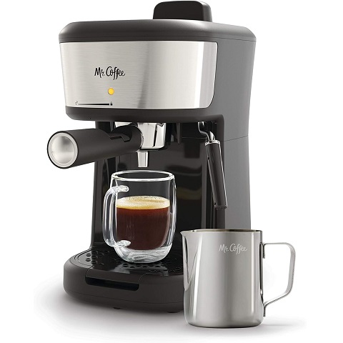 Amazon - Mr. Coffee Espresso and Cappuccino Machine, Single Serve Coffee Maker with Milk Frothing Pitcher and Steam Wand, 20 ounces, Stainless Steel,Black