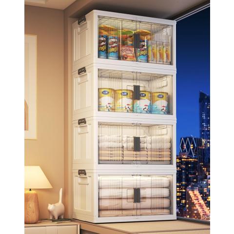 Amazon - OlarHike 76QT Lockable Storage Bins with Lids - Folding Storage box with Doors and Wheels, Collapsible Plastic Storage Bins for Closets, Stackable Storage Organizer, Storage Containers, 4 Pack Cubes