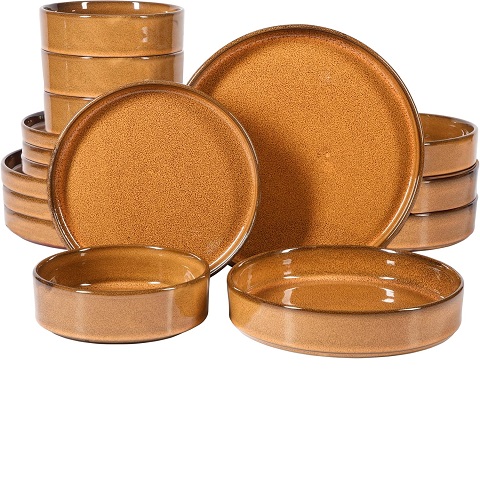 Amazon - Oprah's Favorite Things - Santorini Mist Double Bowl Terracotta Reactive Glaze Plates and Bowls Dinnerware Set - Amber, Service for Four (16pcs)