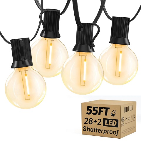 Amazon - Outdoor String Lights,55FT Shatterproof LED Patio Lights with 30 Dimmable Plastic G40 Bulbs,2200K Waterproof Hanging Lights String,Connectable Outside Lights for Backyard,Cafe,Porch,Deck,E12 Base