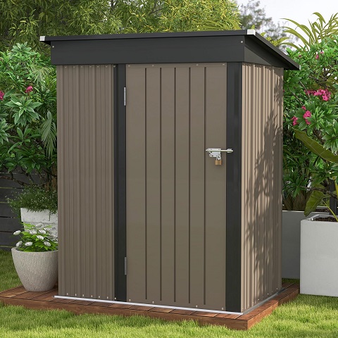 Amazon - Patiowell 5x3 FT Outdoor Storage Shed, Tool Shed with Sloping Roof and Lockable Door, Metal Shed for Backyard Garden Patio Lawn, Brown