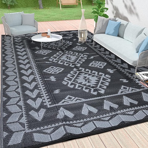 Amazon - Pendolr Outdoor Rugs for Patio Clearance - 5'x8' Waterproof Reversible Indoor Outdoor Rug Carpet, Portable Plastic Straw Rug for RV Camping, Picnic, Beach, Porch, Deck(Rug004#,Black&Gray)