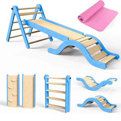 Amazon - Pikler Triangle Set 7in1 Toddler Climbing Toys Indoor Foldable Baby Climbing Toys Wooden Montessori Climbing Set with Arch, Ramp, Ladder for 1-3 Years, Jungle Gym for Kids (Blue)