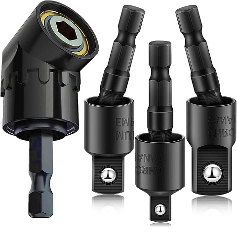 Amazon - Right Angle Drill Adaptor,4-in-1 Impact Drill Bit Extension,360° Rotatable 1/4 3/8 1/2'' Impact Grade Socket Adapter Set,105 Degree Angle Screwdriver Drill Bit for Household Workplace Industry