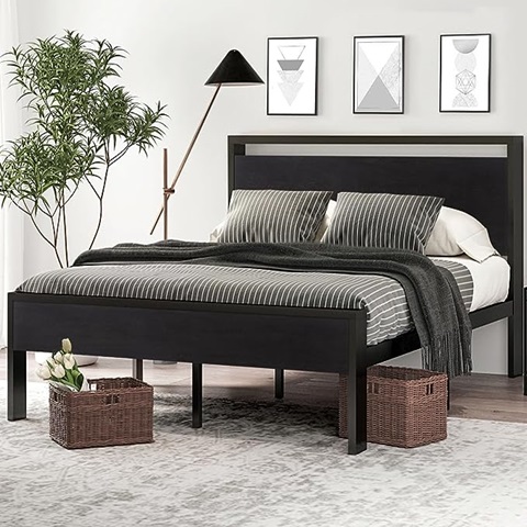 Amazon - SHA CERLIN 14 Inch Queen Size Metal Platform Bed Frame with Wooden Headboard and Footboard, Mattress Foundation, No Box Spring Needed, Large Under Bed Storage, Non-Slip, Black Oak