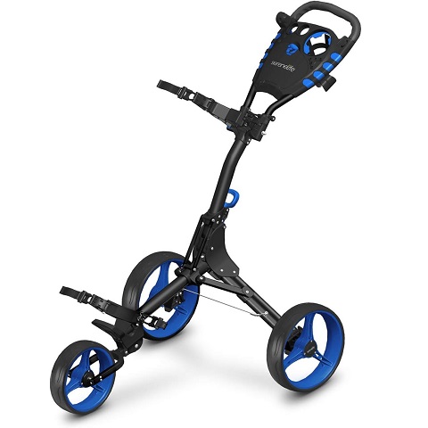 Amazon - SereneLife 4 Wheel Golf Push Cart - Lightweight Folding Walking Push Cart Roller Golf Bag Holder w/Foot/Handle Brake, Upper/Lower Bracket w/Elastic Strap, Scorecard/Cup/Bag Storage Holder SLGZ36