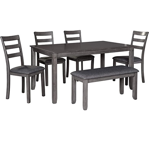 Amazon - Signature Design by Ashley Bridson Modern 6 Piece Dining Set, Includes Dining Table, 4 Chairs & Bench, Gray