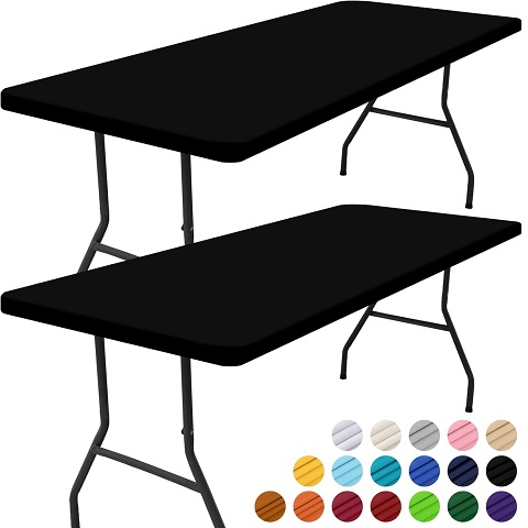 Amazon - Smiry Rectangle Picnic Table Cloth 2 Pack, Waterproof Elastic Fitted Tablecloths for 6 Foot Tables, Washable Polyester Table Cover for Camping, Indoor and Outdoor (Black, 30