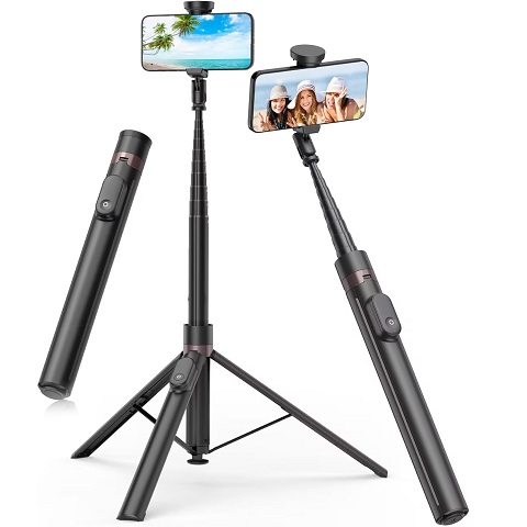 Amazon - TONEOF 66'' Automatic Tripod,Auto-Open Phone Tripod Stand with Magnetic Rechargable Remote,Selfie Stick Tripod 360° Vertical & Horizontal Rotatable,Stable Travel Tripod for iPhone/Android(Black)