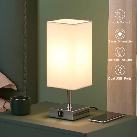 Amazon - Touch Control Table Lamp, Kakanuo Touch Bedside Lamp with 2 USB Charging Ports, 3 Way Dimmable Touch Desk Lamp for Bedroom, Nightstand, Living Room and Office, LED Bulb Included
