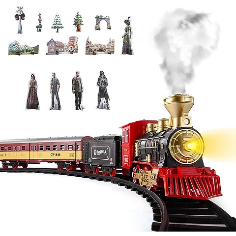 Amazon - Train Sets with Steam Locomotive Engine, Cargo Car and Tracks, Battery Powered Play Set Toy w/Smoke, Light & Sounds, for Kids, Boys & Girls 3 4 5 6 7 Years Old