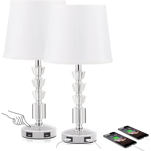 Amazon - USB Crystal Touch Table Lamp Set of 2 with USB Ports, Seealle 3 Way Dimmable Bedside Lamp, 17.8” Desk Lamp Nightstand Lamp for Bedroom Living Room Guest Room and Office(Bulb Included)