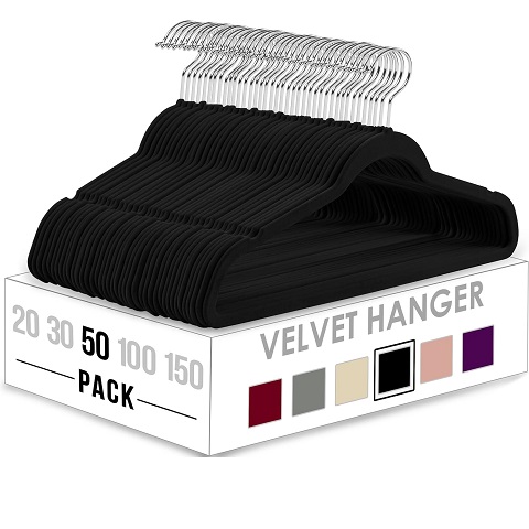 Amazon - Utopia Home Velvet Hangers 50 Pack - Non-Slip Clothes Hangers - Black Hangers - Suit Hangers with 360 Degree Rotatable Hook - Heavy Duty Coat Hangers - Pants Hangers