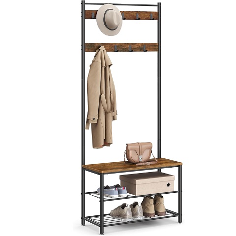 Amazon - VASAGLE Coat Rack, Hall Tree with Shoe Storage Bench, Entryway Bench with Shoe Storage, 3-in-1, Steel Frame, for Entryway, 12.6 x 27.6 x 68.9 Inches, Industrial, Rustic Brown and Black UHSR41BX