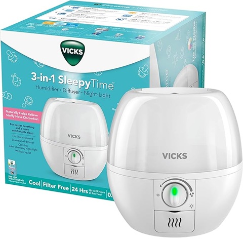 Amazon - Vicks Humidifier 3-in-1 SleepyTime Cool Mist Humidifier for Baby & Kids Rooms with Color Changing Night Light and Essential Oil Diffuser, White