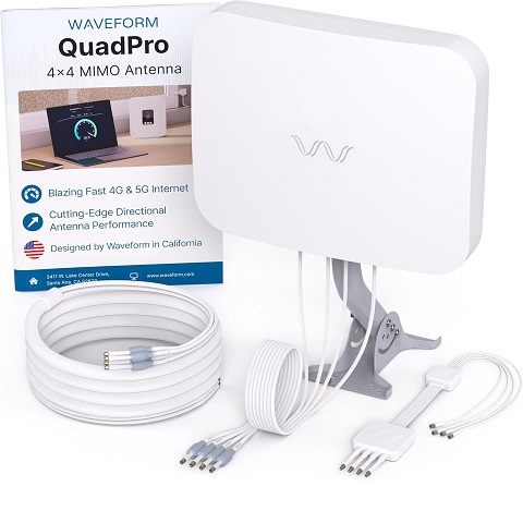 Amazon - Waveform QuadPro 4x4 MIMO Signal Boosting Panel Antenna Kit | External Antenna for 4G/5G Routers & Gateways | for T-Mobile Home Internet, Verizon, AT&T (Complete Kit w/ 20' Cable & Window Entry)
