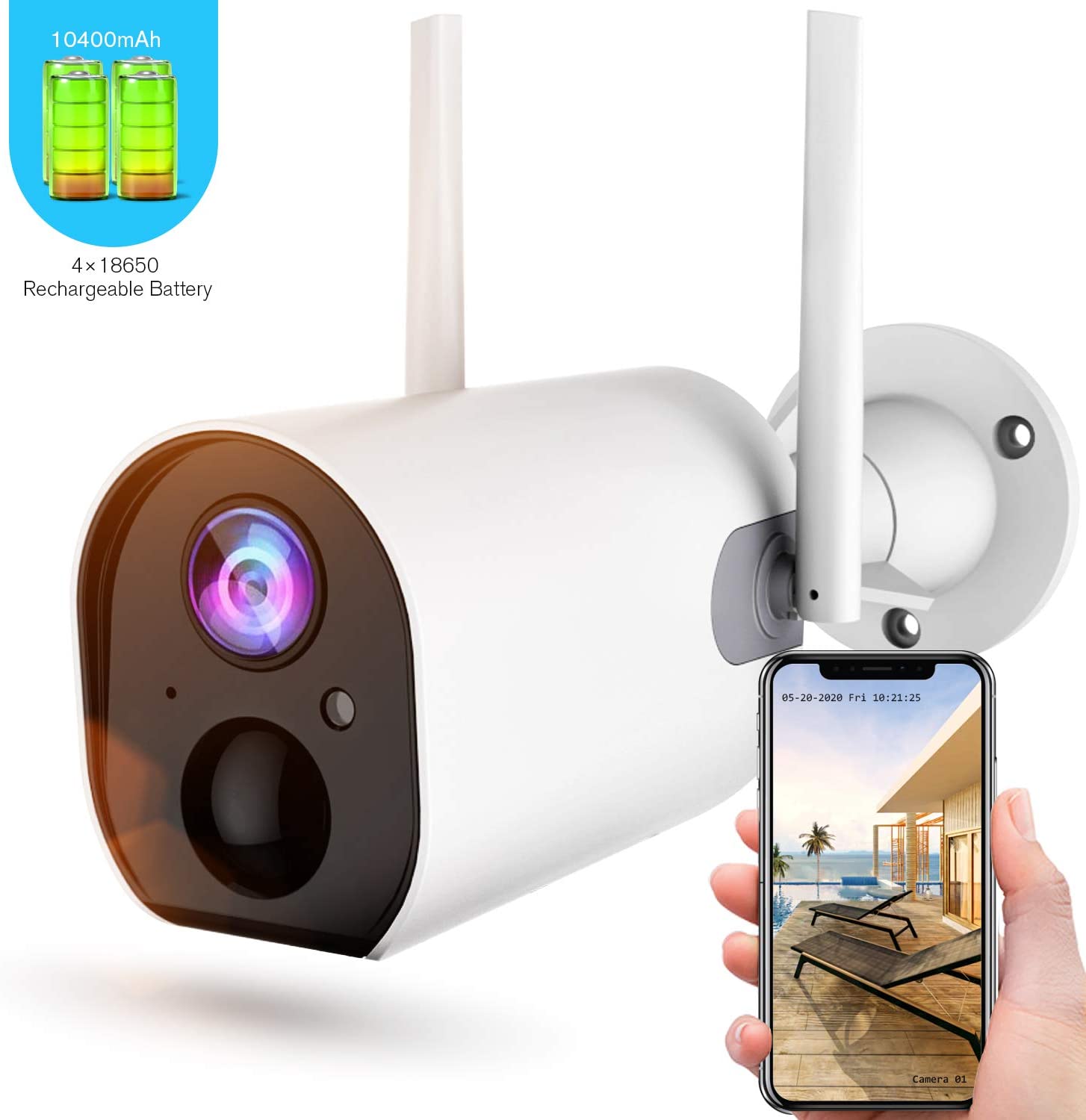 Amazon - Wireless Outdoor Security Camera, Rechargeable Battery-Powered Home Security WiFi Camera, 4dbi Antenna, Motion Detection, 2-Way Audio, Night Vision, IP66 Waterproof, Cloud Storage/SD Slot, 2.4G WiFi