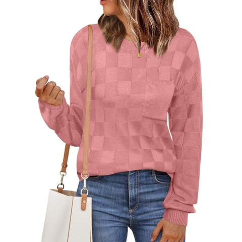 Amazon - Womens Sweaters 2025 Fashion Trendy Long Sleeve Crewneck Checkered Sweater Knit Loose Pullover Sweater Tops